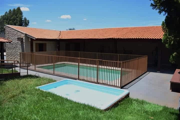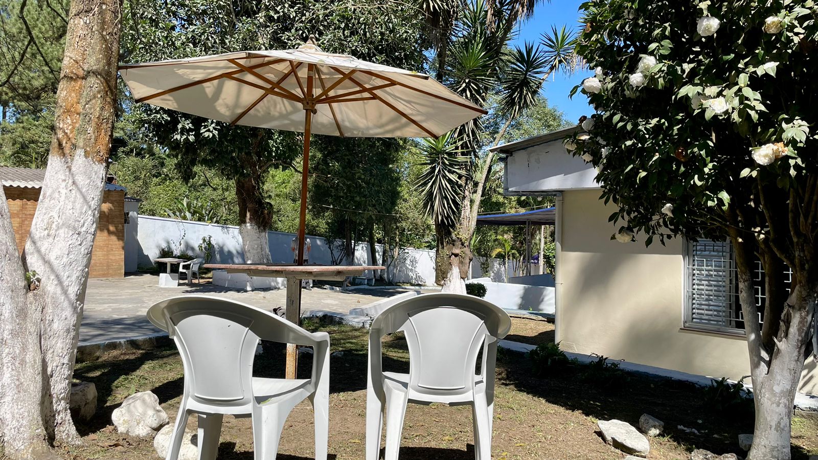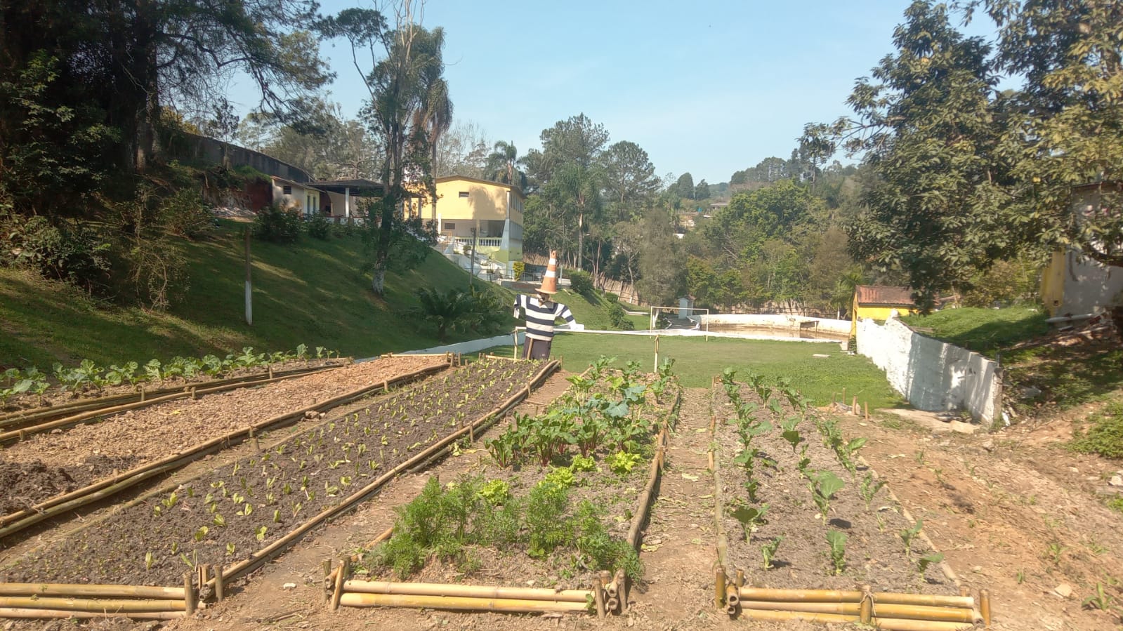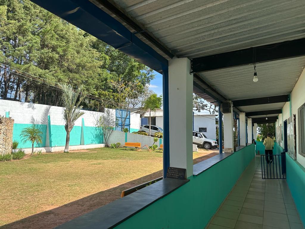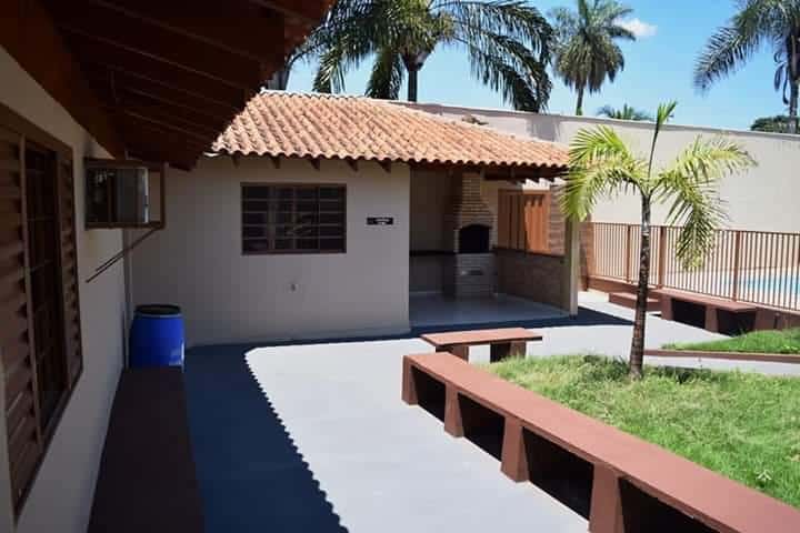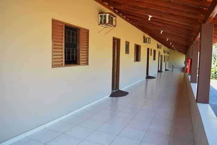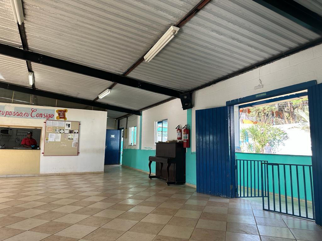 Ambientes equipados com piscina, academia, campo e quadra para esportes, refeitório, além de uma área ampla.