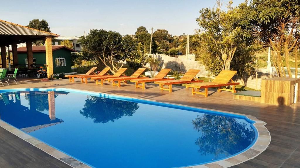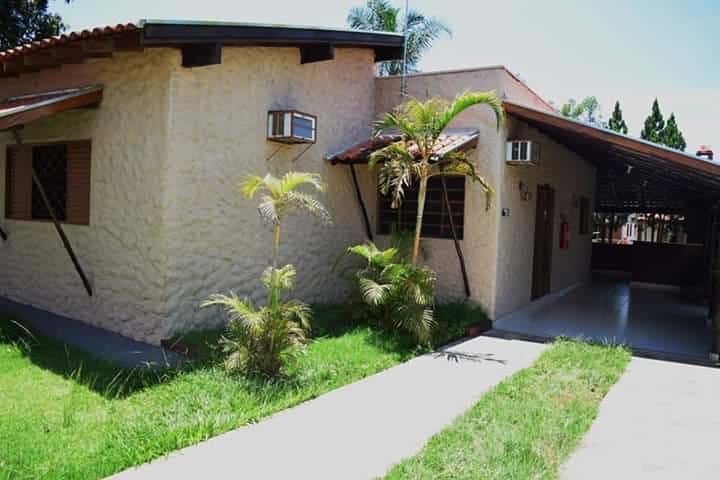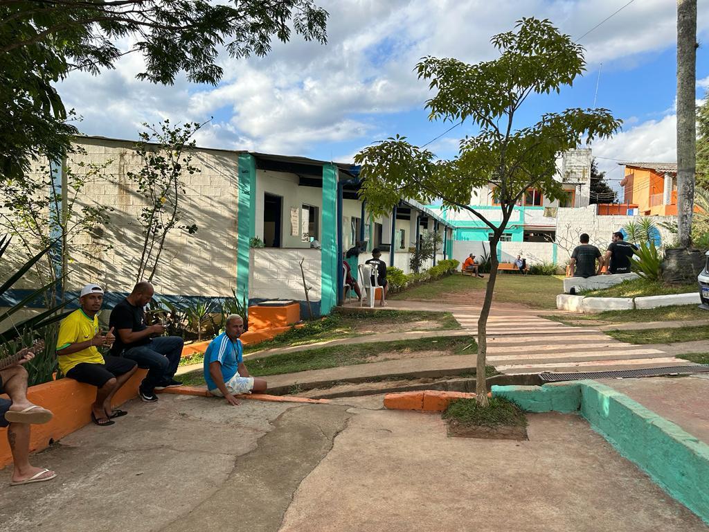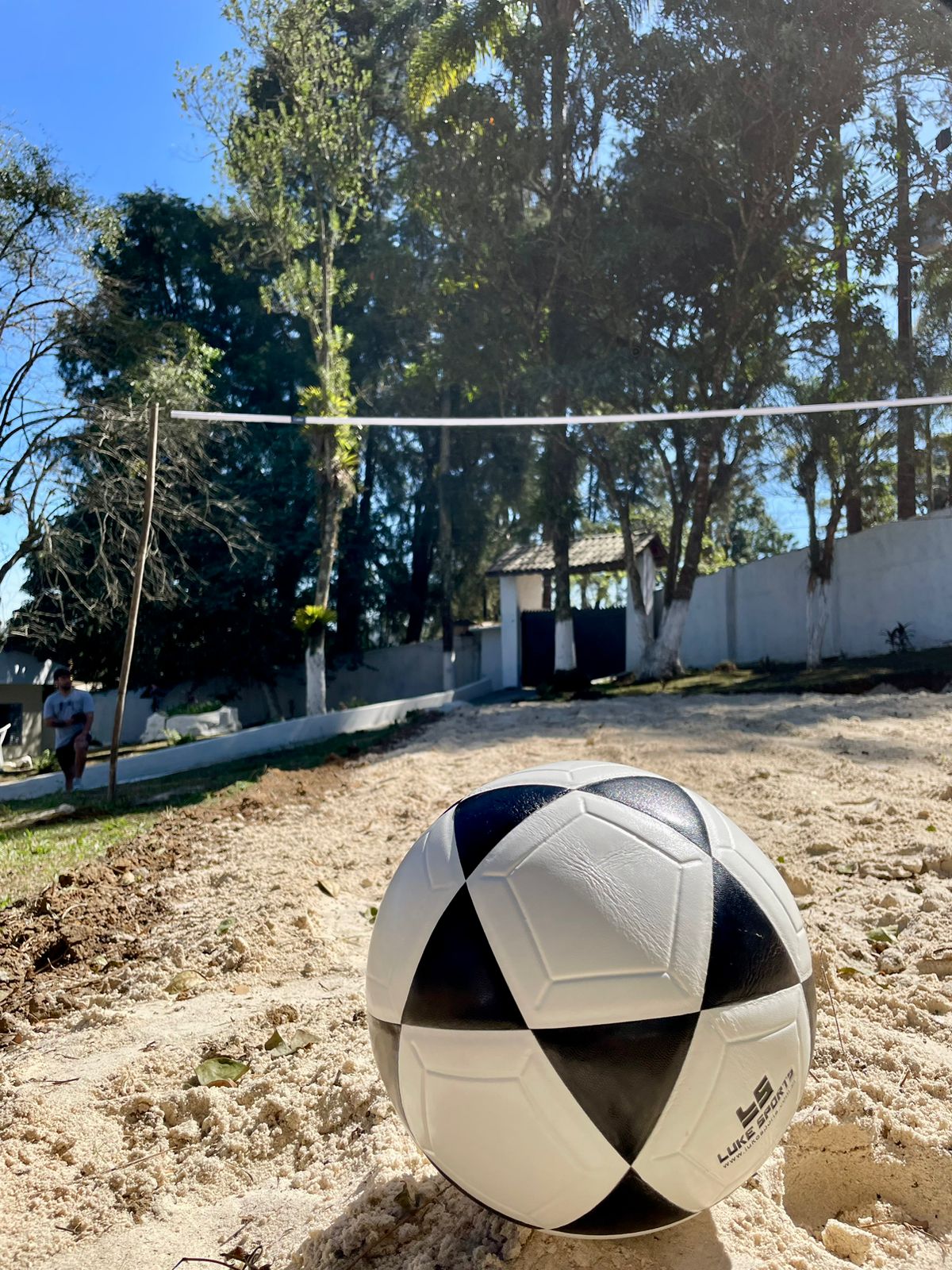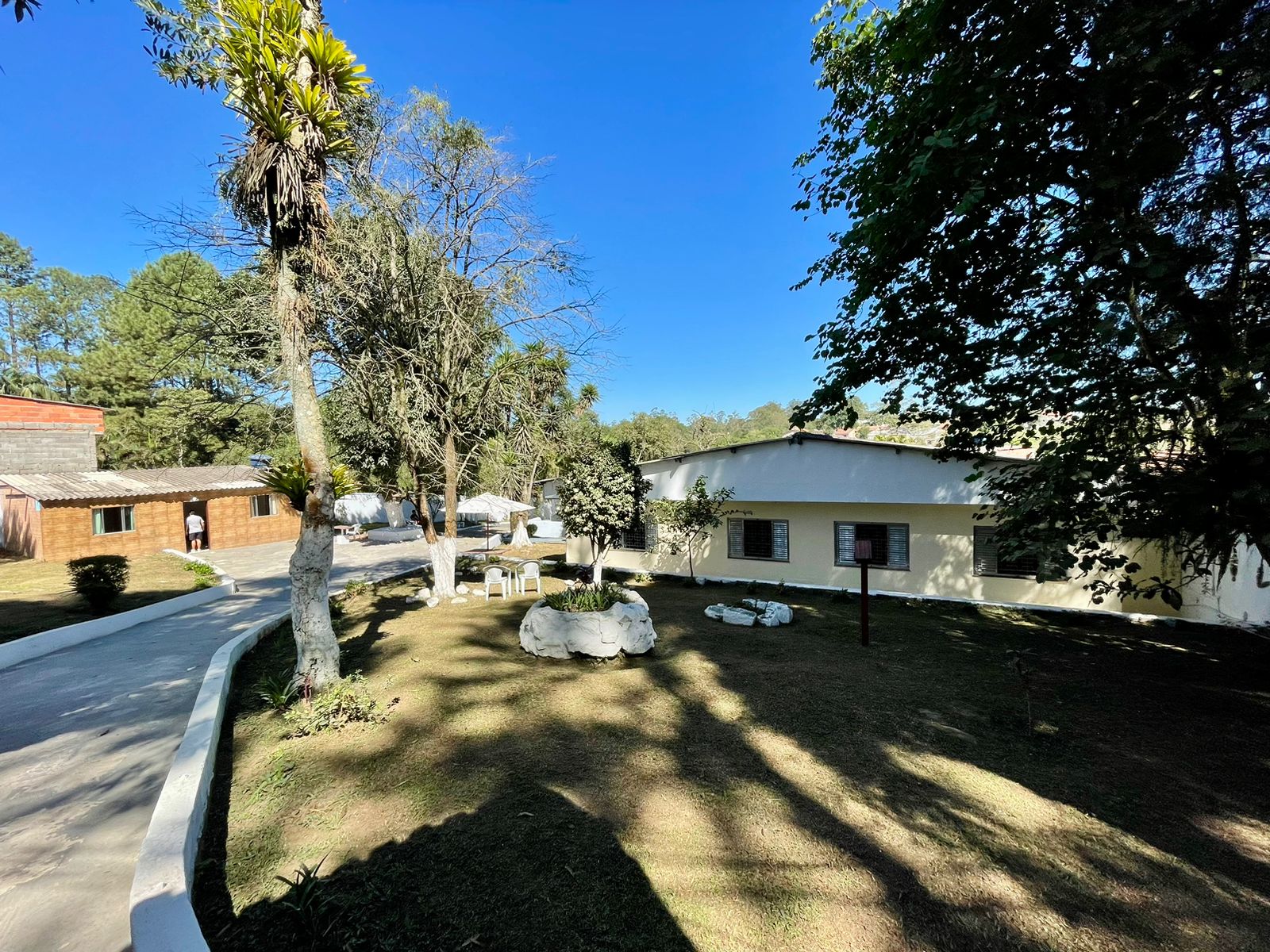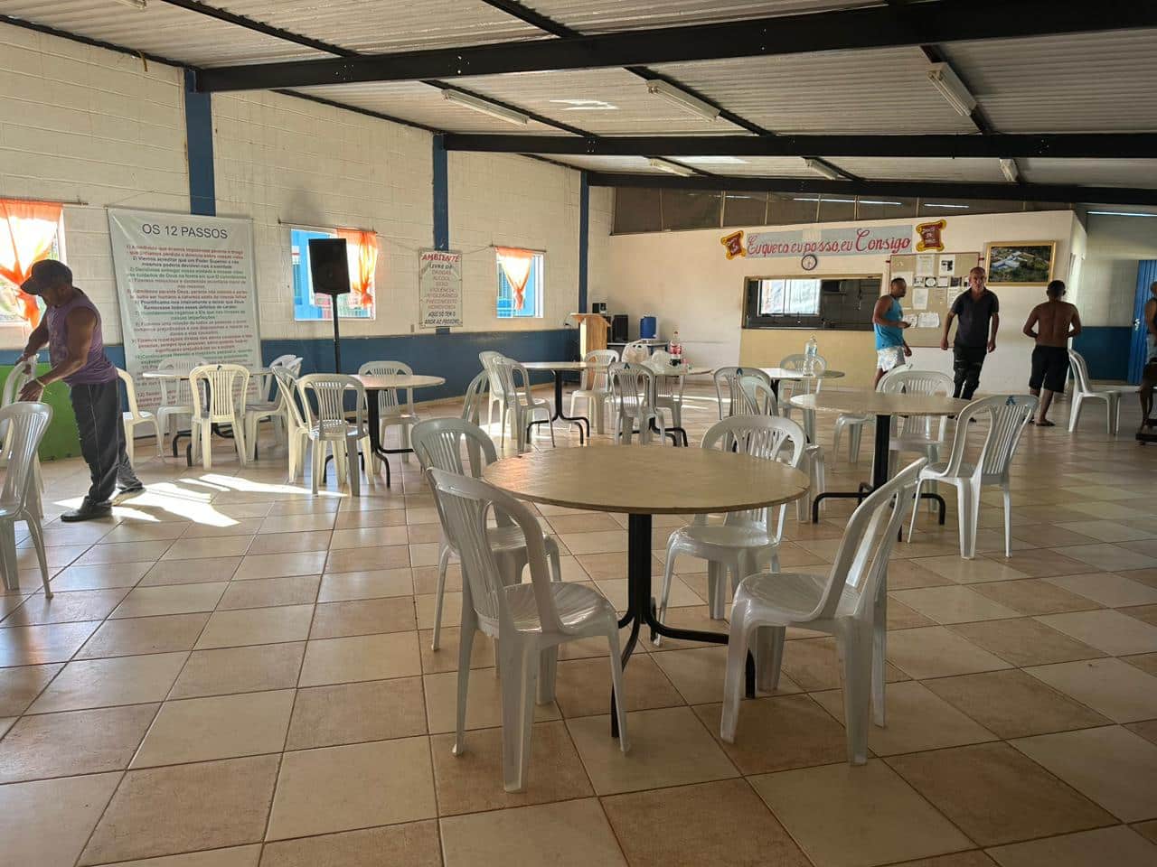 Ambientes equipados com piscina, academia, campo e quadra para esportes, refeitório, além de uma área ampla.