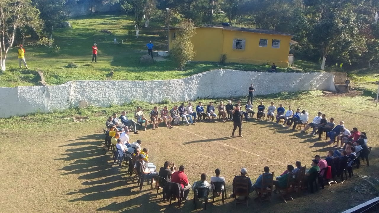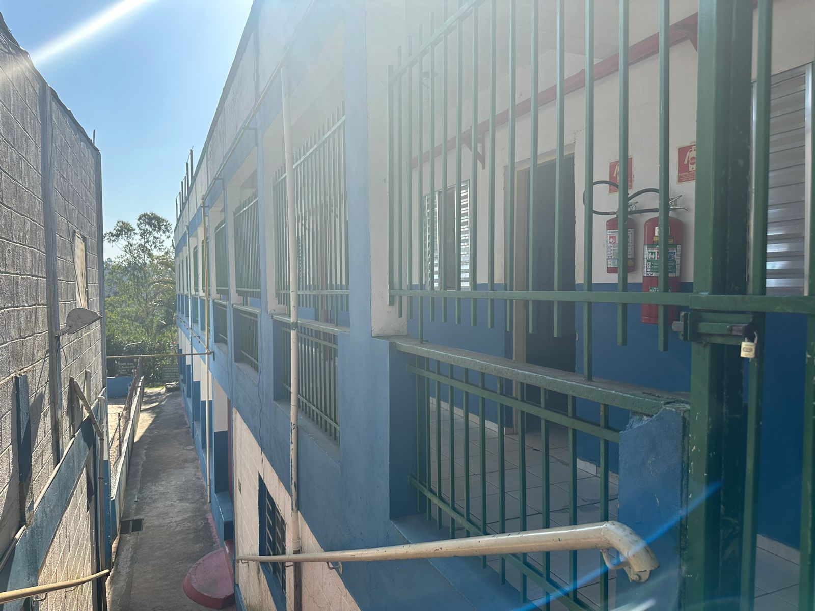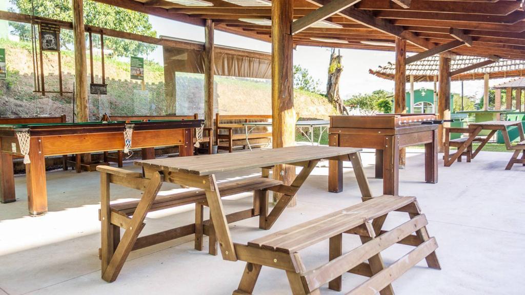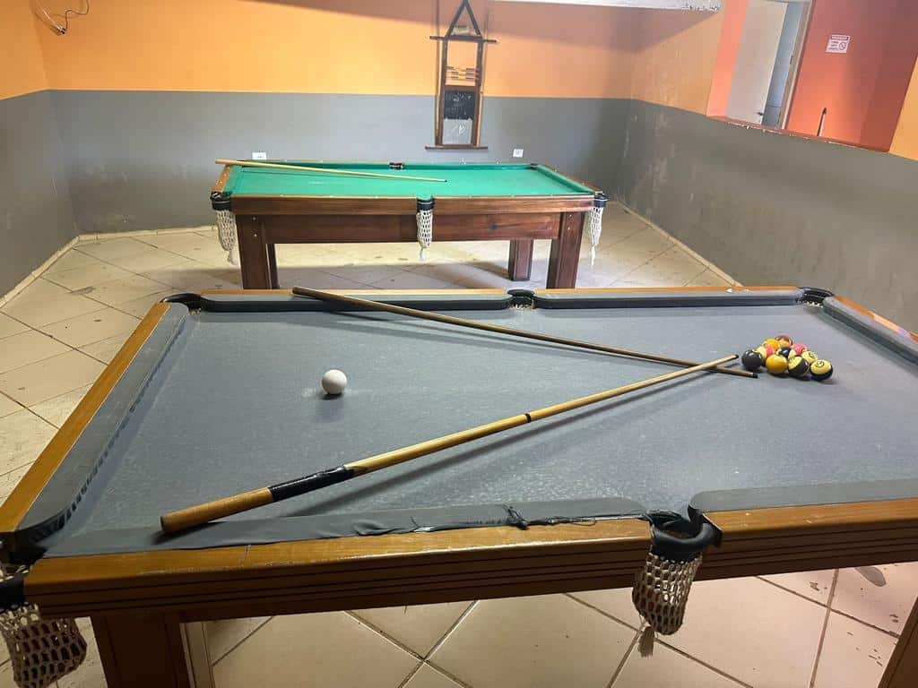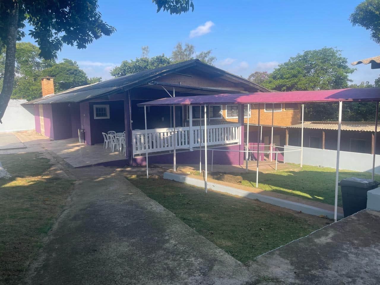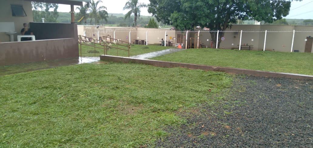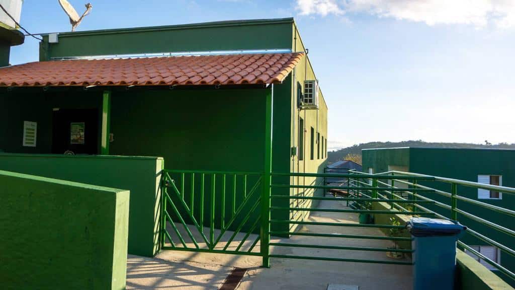 Ambientes equipados com piscina, academia, campo e quadra para esportes, refeitório, além de uma área ampla.
