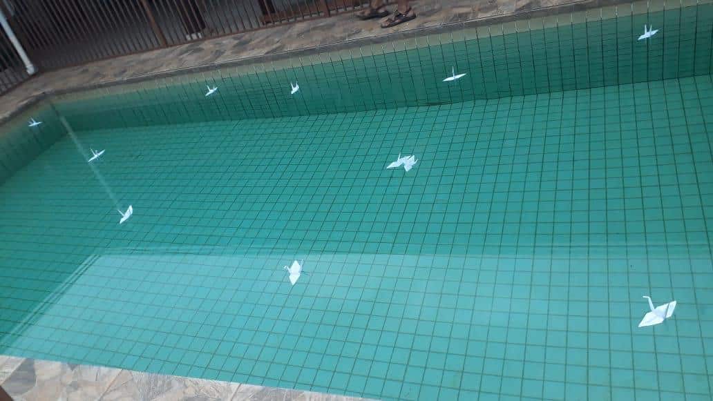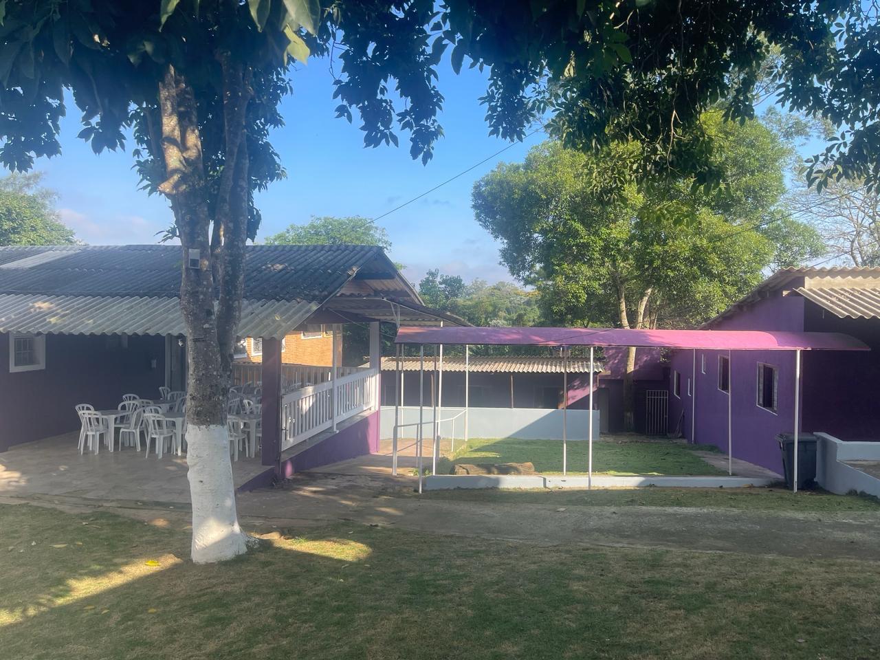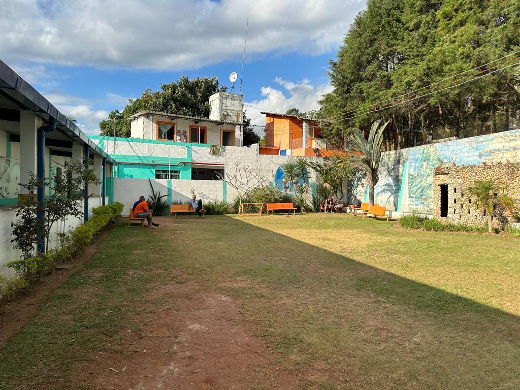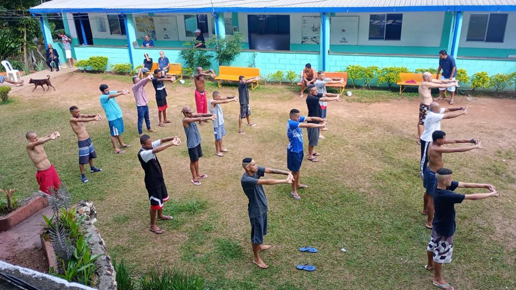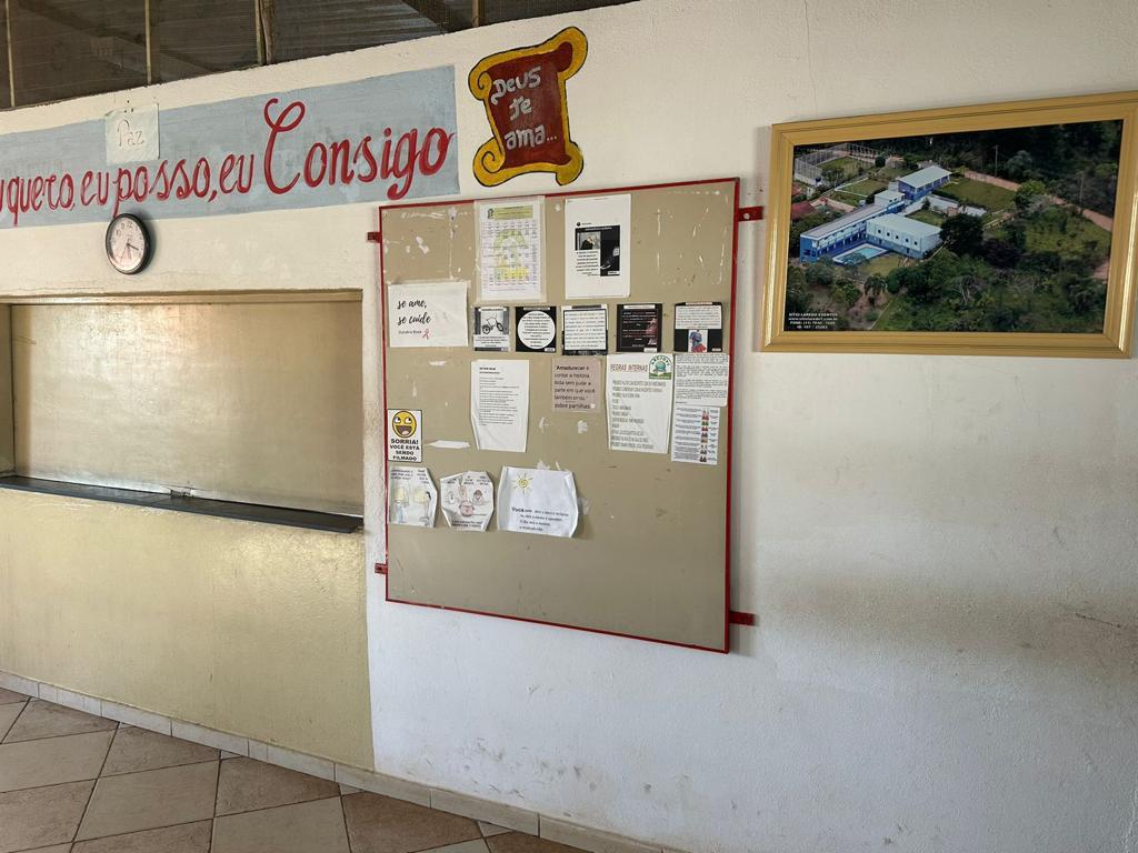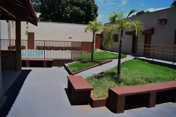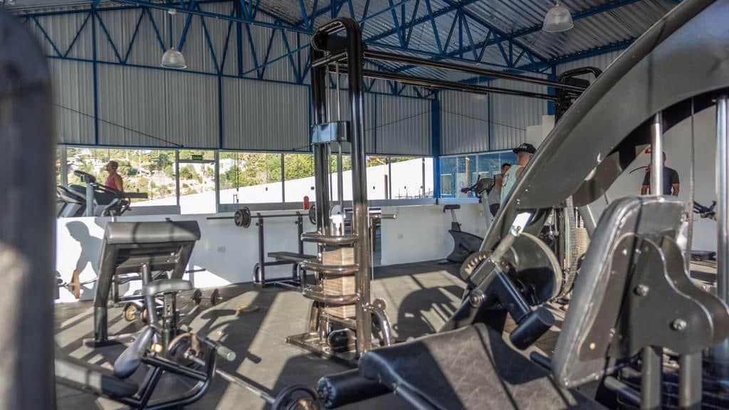 Ambientes equipados com piscina, academia, campo e quadra para esportes, refeitório, além de uma área ampla.